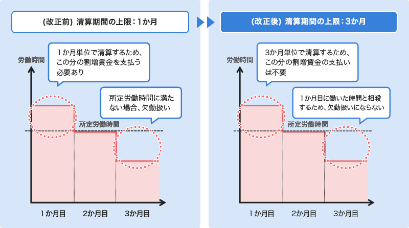 ③フレックスタイム制の清算期間の上限を1か月から3か月に延長する。(問6参照)
